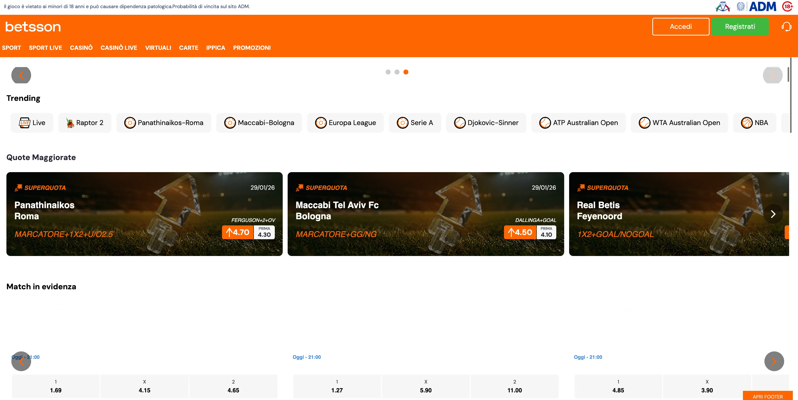 Betsson è un colosso del gambling europeo con una storia che abbraccia oltre mezzo secolo di esperienza nel settore. Questo operatore svedese si è guadagnato una reputazione impeccabile grazie alla sua professionalità, alla varietà dell'offerta e a un impegno costante verso il gioco responsabile. La piattaforma combina tradizione e innovazione, offrendo un ambiente di gioco completo che soddisfa sia i neofiti sia i giocatori più esigenti.